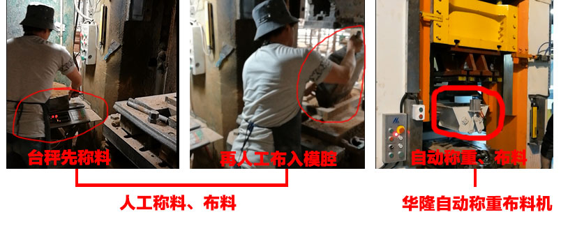 目前在不少耐材企業(yè)內(nèi)看到的還是采用人工布料的。先用搓斗裝料,然后用臺秤稱,有誤差的話,再手動去增減料。